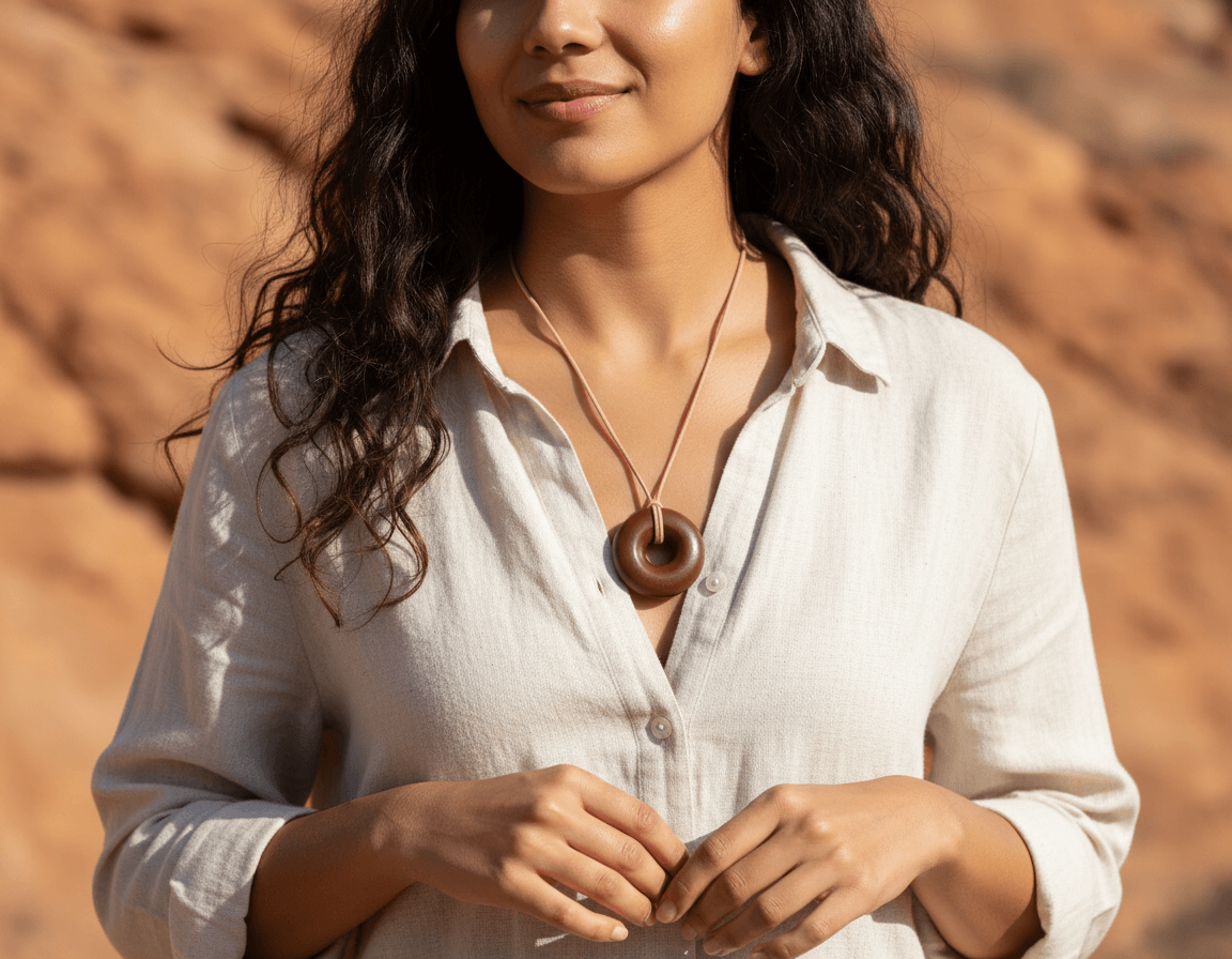 Tap into the amazing healing energy of Sedona’s vortex with Andy’s Red Rock Sedona Vortex Orgonite Donut Pendant — a handcrafted orgone generator and stylish chakra jewelry you can wear every day for natural spiritual protection. This powerful energy harmonizer pendant combines a special Sedona Vortex Blend of high-vibe healing crystals like Clear Quartz, Rose Quartz, Amethyst, and Shungite & more with metal shavings and resin to help neutralize nasty EMFs, clear out negative energy, and keep your chakras balanced. Great for meditation, energy healing, grounding, and raising your personal vibration, this orgonite pendant offers solid protection against electromagnetic frequencies while boosting your emotional and spiritual wellness. Plus, it comes on an strong natural leather cord, so you get comfort and style all in one meaningful energy accessory.